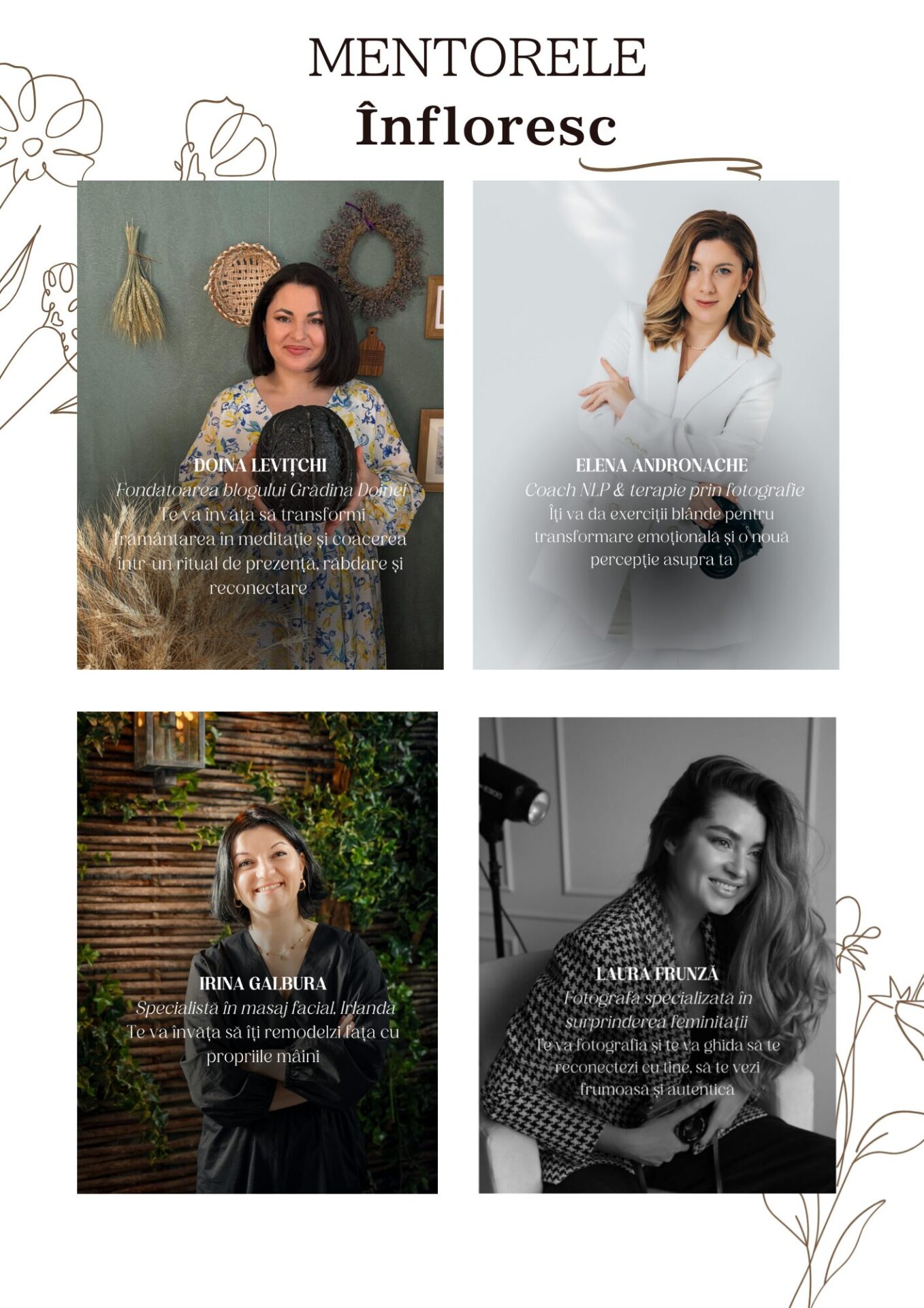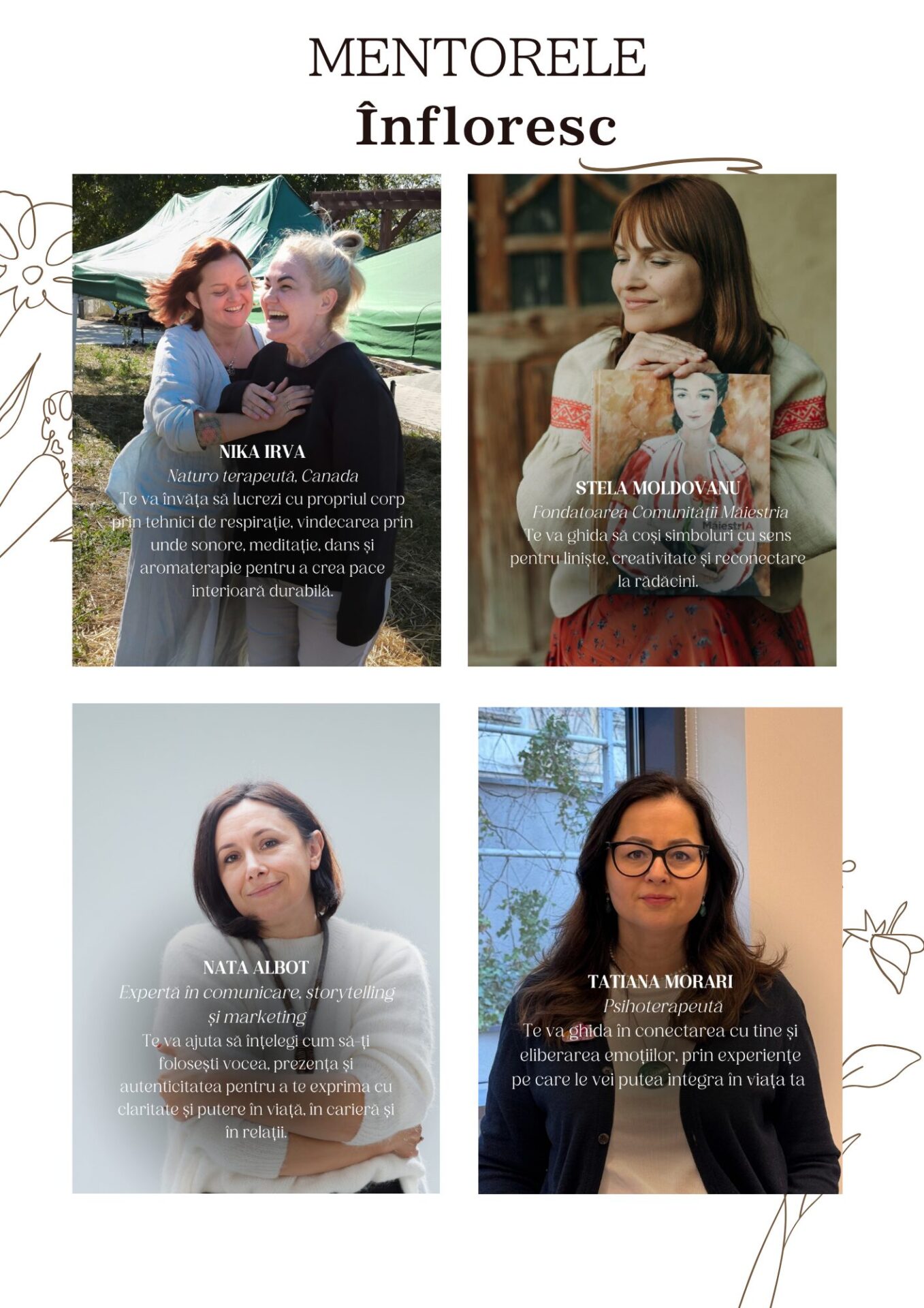 ✔ comunicare cu 8 mentore, fiecare extraordinară în domeniul său